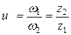 Отношение угловых скоростей ведущего звена ω1 к ведомому звену ω2 по модулю называется передаточным отношением: