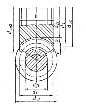 Зубья колес имеют вогнутую форму и охватывают червяк по дуге с углом 2δ.