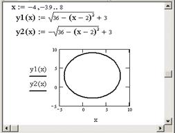 Таким образом, для построения окружности необходимо задать две функции: верхнюю и нижнюю полуокружности. Диапазон значений аргумента вычисляется следующим образом: