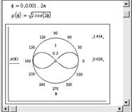· установить курсор в то место, где должен быть построен график, на математической панели выбрать кнопку Graph (график) и в открывшейся панели кнопку Polar Plot (полярный график);