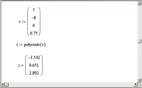 Рис. 3.2. Решение уравнения с помощью функции polyroots