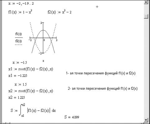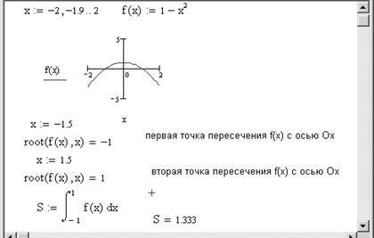 Рис. 6.5. Нахождение площади фигуры, ограниченной линиями f (x) = 1 – x 2и y = 0