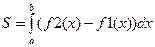 Площадь фигуры, заключенной между графиками функций f1(x) и f2(x) и прямыми х = а и х = b, вычисляется по формуле: