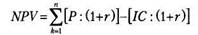 Р — доходы по годам, генерируемые инвестициями; г — ставка дисконтирования; k = 1, 2,3... п — число стандартных периодов реализации проекта (лет, месяцев); 1С — сумма разовой инвестиции.