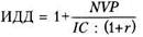 где ИДД — индекс доходности дисконтированных инвестиций; NPV — чистый дисконтированный доход; 1С — инвестиции по годам инвестиционного цикла; г — ставка дисконтирования;