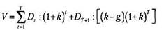 Внутренняя стоимость акции в этой модели будет определяться как сумма приведенной стоимости дивидендов, выплачиваемых до периода T(VT) включительно, и приведенной стоимости прогнозируемых дивидендов, которые будут выплачиваться после момента времени Т(УТ+):