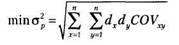 аху — стандартное отклонение по ценной бумаге; dxy — доля ценной бумаги в портфеле; гщ — коэффициент корреляции между ценными бумагами хну.