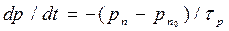 Скорость рекомбинации неравновесных носителей пропорциональна избыточной концентрации дырок (pn -