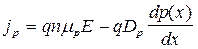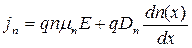 Если в полупроводнике существует и электрическое поле, и градиент концентрации носителей, проходящий ток будет иметь дрейфовую и диффузионную составляющие. В таком случае плотности токов рассчитываются по следующим уравнениям: