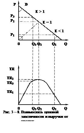 Если на данном ценовом интервале спрос эластичен, то фирма-продавец не окажется в проигрыше от снижения цены и получит в итоге больший валовой доход. На рис. 3-8 снижение цены от P3 к P2