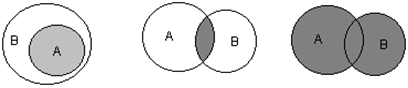 для отношений включения (а), пересечения (б) и объединения (в) двух множеств