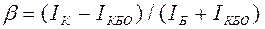 Очевидно, что коэффициент b есть отношение управляемой (изменяемой) части коллекторного тока (IК - IКБО) к управляемой части базового тока (IБ + IКБО).