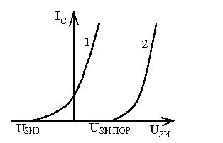 На рисунке 4.4 приведены характеристики прямой передачи МДП-транзисторов с индуцированным (кривая 2) и встроенным (кривая 1) каналами.
