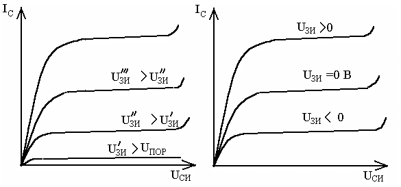 Здесь А - постоянный коэффициент; UЗИ ПОР - напряжение, которое для транзистора с индуцированным каналом принято называть пороговым. Инверсия типа проводимости начинается лишь при достижении напряжения UПОР.