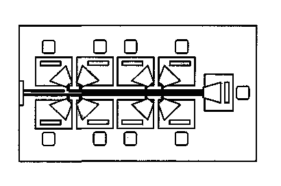 Данную планировку рис 18 можно рекомендовать только в том случае, если в помещении имеется возможность разнесения рабочих столов на требуемое расстояние между ними в два и более метра или при использовании компьютеров с крайне низким уровнем собственных полей. Сетевые провода электропитания каждого рабочего места должны быть максимально локализованы с тыльной его стороны, а пользователь соседнего рабочего места должен находиться в максимально возможном удалении (в пределах существующего пространства каждого рабочего места) от данных проводов. При невыполнении указанных выше условий, данная планировка рабочих мест является недопустимой.