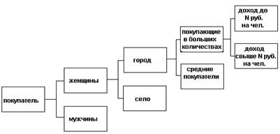 Суть методов группировок – определяется какой-либо системообразующий показатель (например, потенциальный потребитель или товар), а затем проводится последовательная разбивка объектов на группы по наиболее значимым показателям.