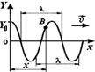 Упругая волна называется гармонической, если соответствующие ей колебания частиц среды являются гармонич. Пусть гармонич. волна распространяется со скоростью υ вдоль оси Ox. Обозначим смещение частиц среды от равновесного положения через Y = Y (x, t). Графич. представление волнового процесса дается зависимостью между смещением частиц среды и расстоянием x этих частиц от источника колебаний O в данный момент времени t. Т.е., график волны представляет собой зависимость смещения всех частиц среды от расстояния до источника колебаний в данный момент времени Y = Y (x, t = Сonst), тогда как график гармонич. колебания выражает зависимость смещения данной частицы от времени Y = Y (x = Сonst, t). Длиной волны λ называется расстояние между ближайшими частицами, колеблющимися в одинаковой фазе. Длина волны равна расстоянию, на которое распространяется гармонич. волна за время, равное периоду колебаний