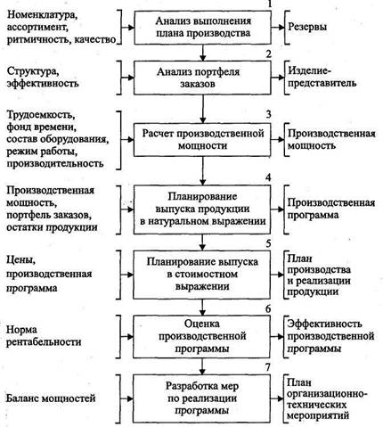 Разработка производственной программы является наиболее сложным процессом, поскольку в нем приходится согласовывать и учитывать огромное число различных факторов. Типовой алгоритм формирования программы включает: