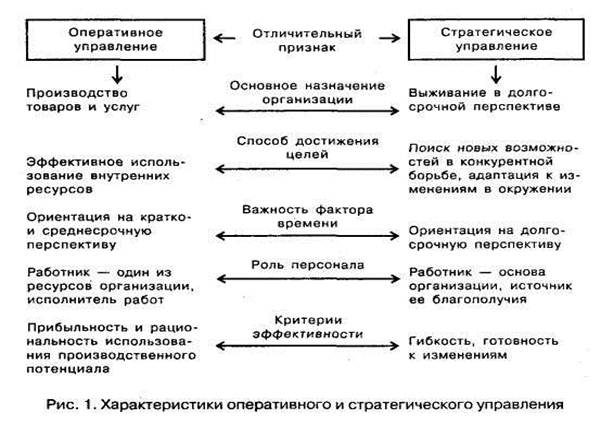 Ключевые характеристики стратегического аспекта управления организацией в сравнении с оперативным (текущим) управлением, практиковавшимся в бизнесе свыше 20 лет назад, представлены на рис. 1.