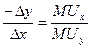 Предельная норма замещения (MRS) благом х блага у представляет собой объем блага у, от которого необходимо отказаться, чтобы увеличить потребление блага х на 1 единицу оставаясь на прежнем уровне полезности, т.е. MRS