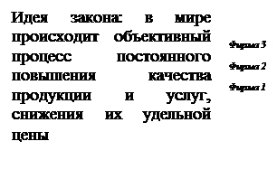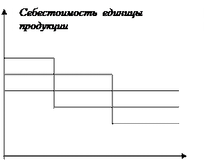 Борьба каждого предприятия за выживание, за сохранение своего места на рынке называется конкуренцией, в ходе которой слабые уходят с рынка, сильные укрепляются. На рис. 10 показано (условно) как некая фирма 1, имевшая ранее предпочтительные шансы на выживание (минимальную себестоимость единицы продукции), разоряется, позволив фирмам 2 и 3 обогнать себя в борьбе за снижение себестоимости продукции.