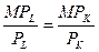 При производстве продукции фирма стремится найти оптимальное сочетание ресурсов, позволяющее ей минимизировать издержки. Она старается сочетать ресурсы таким образом, чтобы предельный продукт на единицу денежной стоимости каждого применяемого ресурса был одинаковым, т.е.