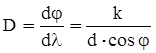 Найдем D для дифракционной решетки. Для этого продифференцируем (1). Получим: dcosφ·dφ = k·dλ. Откуда: