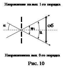 б) φmax › u/2 – теперь не все дифрагированные лучи входят в объектив и, соответственно, в формировании изображения они не участвуют (рис.9б). В этом случае картинка искажается. При достаточно