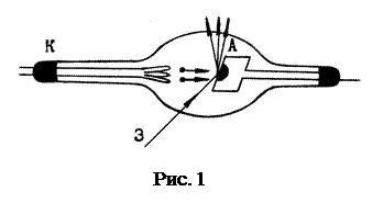 Исследуя причины появления этого излучения, Рентген установил, что оно появляется в том месте, где пучок летящих электронов ударяется о стенку катодной трубки. Исходя из этого обстоятельства, Рентген сконструировал и построил первую, предназначенную специально для получения X-излучения, трубку, существенные черты конструкции которой сохранились до наших дней. Рентгеновская трубка (рис.1) представляет собой стеклянный баллон с двумя впаянными основными электродами: анодом (А) и катодом (К). Катод выполнен в виде спирали из тугоплавкого металла (W, Pt), через которую пропускают ток. При этом, вследствие термоэлектронной эмиссии, нагретая спираль испускает электроны. Анод представляет собой цилиндр, торец которого срезан под углом. В скошенную поверхность торца анода впаяна пластинка из тугоплавкого металла (W, Pt, Cu, Ag и т.д.) – «зеркало» (З). В баллоне создается высокое разряжение Р =10-6-10-7 мм.рт.ст. Между анодом и катодом приложено высокое напряжение – 40÷200 кВ, а в некоторых случаях даже до I000 кВ. Электроны, испускаемые нитью накала, ускоряются электрическим полем до скоростей ~2·108 м/с. Узкий пучок электронов и направляется на анод, который, благодаря косому срезу, направляет возникающее на «зеркале» рентгеновское излучение в выходное окно трубки. К.п.д. рентгеновской трубки составляет всего 1-5 %, а остальная энергия электронного пучка превращается во внутреннюю энергию. По этой причине тело анода изготавливают из хорошо проводящих тепло материалов (Сu) и часто полым для подвода охлаждающей жидкости.