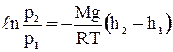 Пусть на высоте h давление р. Тогда на высоте h + dh давление – р + dp. Причём, если dh >0, то dp < 0. (р + dp) – р = – r·g·dh. Из уравнения состояния Менделеева-Клапейрона, имеем: