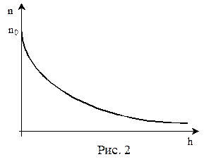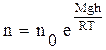 Т.к. давление прямо пропорционально концентрации молекул, то можно получить закон изменения концентрации молекул с высотой при условии, что температура с высотой не меняется (Т = const):