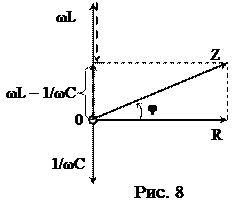 – полное сопротивление или импеданс цепи переменного тока. Треугольник сопротивлений представлен на рис. 8.