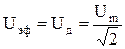 Приборы, включенные в цепь переменного тока (амперметр, вольтметр) показывают эффективные значения тока и напряжения.
