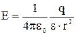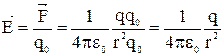 Эта постоянная для каждой точки поля векторная величина равная силе, действующей на единичный, положительный заряд называется напряженностью. Для поля точечного заряда q на расстоянии r от него: