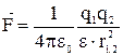 В диэлектрической среде сила взаимодействия между зарядами, а значит и напряженность поля, уменьшается в ε раз: