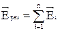 При наложении друг на друга нескольких электростатических полей, результирующая напряженность определяется как векторная сумма напряженностей каждого из полей (принцип суперпозиции):