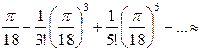 = 0,00001| ≈ 0,174533 − 0,000886 = 0,173647,