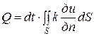 где dS − элемент поверхности, k − коэффициент внутренней теплопроводности,