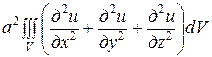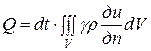 Теперь найдем Q другим способом. Выделим элемент dV объема V, ограниченного поверхностью S. Количество теплоты dQ, получаемой элементом dV за время dt, пропорционально повышению температуры в этом элементе и массе самого элемента, т.е.