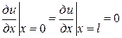 3. Случай стержня, ограниченного с двух сторон. Задача Коши состоит, чтобы при х = 0 и х = l найти решение уравнения (3), удовлетворяющее начальному условию
