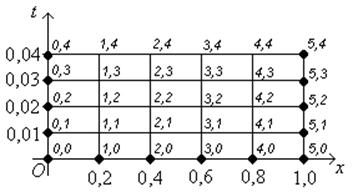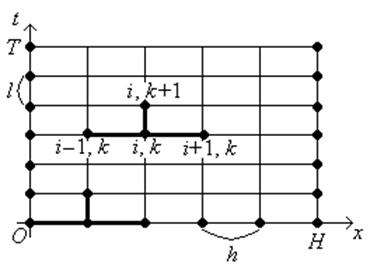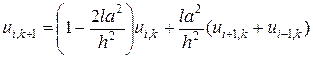 во всех внутренних точках следующего слоя, т.е. для k = 1. Значения искомой функции в крайных точках известны из граничных условий (3), (4). Переходя от одного слоя сетки к другому, определяем значения искомого решения во всех узлах сетки.