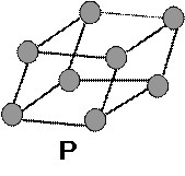 В каждой сингонии в зависимости от ее симметрии можно построить не более 4-х типов элементарных ячеек кристаллической решетки (рис. 2). У всех элементарных ячеек, построенных на базисных векторах a, b, c, в каждой из восьми вершин должен находиться атом. Кроме того каждый атом данной элементарной ячейки также входит в состав еще восьми смежных элементарных ячеек. Поэтому для самой простой (примитивной, обозначаемой далее Р) элементарной ячейки, в которой атомы располагаются только в ее вершинах, считается, что на одну элементарную ячейку приходится только один атом. Такую примитивную элементарную ячейку можно построить для всех типов сингоний.