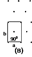 Наконец, можно построить базоцентрированную ячейку с двумя дополнительными атомами в верхней и нижней гранях (обозначается буквой С) для орторомбической сингонии и с двумя дополнительными атомами в двух боковых гранях (обозначается буквой В) для моноклинной сингонии. Базо-центрированные элементарные ячейки содержат два атома.