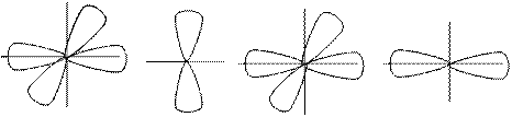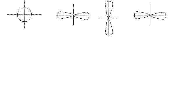 Каждое электронное квантовое состояние характеризуется волновой функцией φlm (r), квадрат модуля которой определяет пространственное распределение электронной плотности. Характерный вид этих распределений для различных l и m показан на рис.