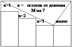 4. Блок варианта. Эта структура – расширение блока решения. Те варианты выхода из этого блока, которые можно сформулировать точно, располагаются слева. Остальные объединяются в один, называемый выходом по несоблюдению условий и располагаются справа.