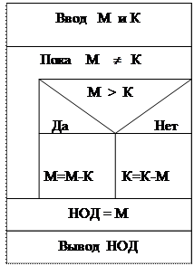 1. Пусть надо определить наибольший общий делитель двух целых чисел М и К