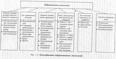 Информационная технология представляет собой процесс, состоящий из четко регламентированных правил выполнения операций над информацией, циркулирующей в ИС, и зависит от многих факторов, которые систематизируются по следующим классификационным признакам (рис 1.1):