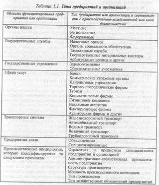 технологии с привязкой ее к принятой модели управления и существующей информационной инфраструктуре является область функционирования экономического объекта, в соответствии с которой организации можно разделить на группы, представленные в табл. 1.1.