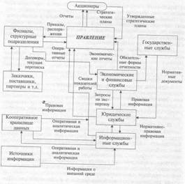 В крупных предприятиях, фирмах, корпорациях процессы обработки информации различаются в зависимости от требований решения функциональных задач, на основе которых формируются информационные потоки в корпоративных системах организации управления (укрупненная схема информационных потоков корпоративной системы представлена на рис. 1.2).