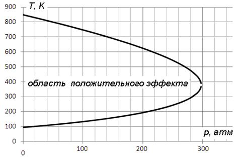 Зависимость температуры инверсии от давления газа перед дросселем называется кривой инверсии. Кривая инверсии зависит от уравнения состояния газа и отделяет совокупность состояний газа, при переходе между которыми он охлаждается, от состояний, между которыми он нагревается.